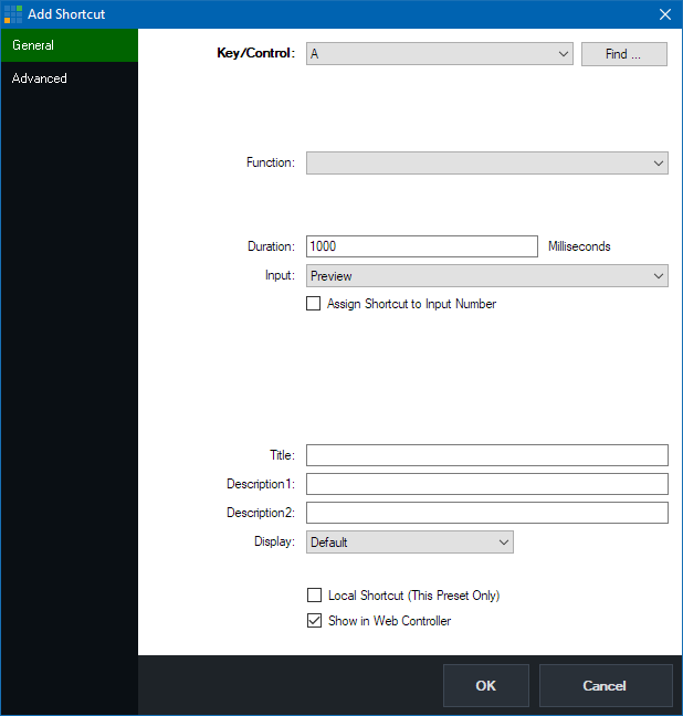 From the vMix Settings window click the Shortcuts tab and then click Add
