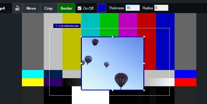 Three different "modes" can be selected from the toolbar: Move, Crop and Border.